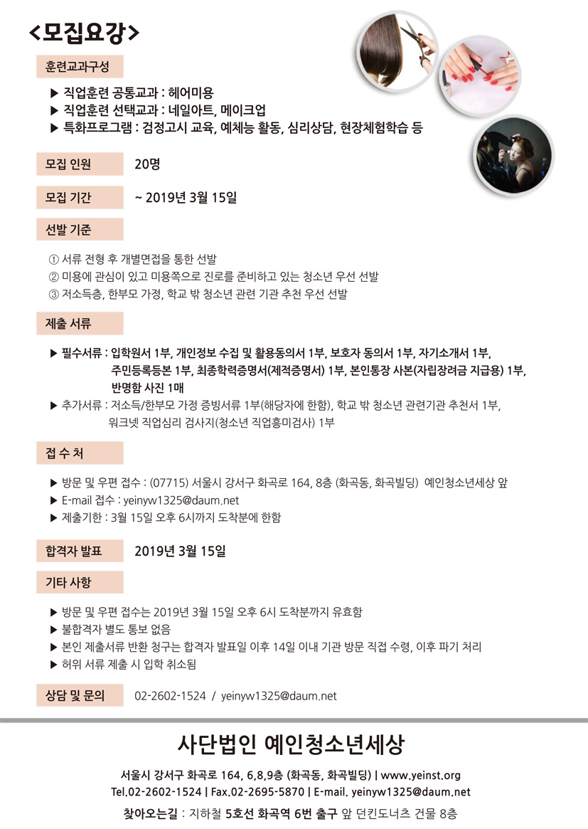 2019³â ³»ÀÏÀÌ·ëÇб³ ºäƼ¾ÆÆ¼½ºÆ® ¾ç¼º°úÁ¤ ÈÆ·Ã»ý ¸ðÁý